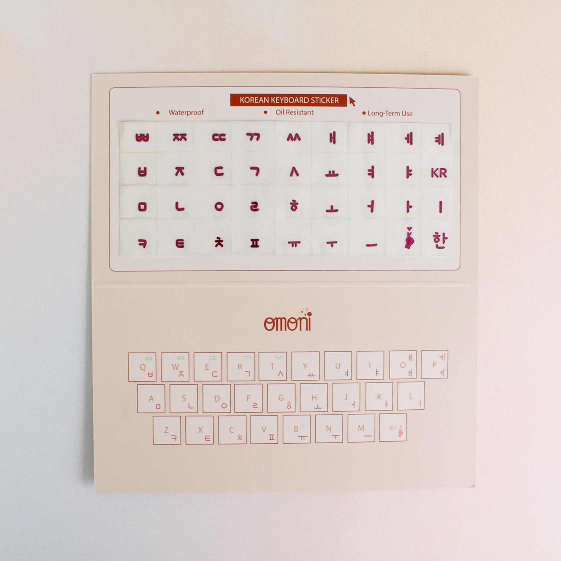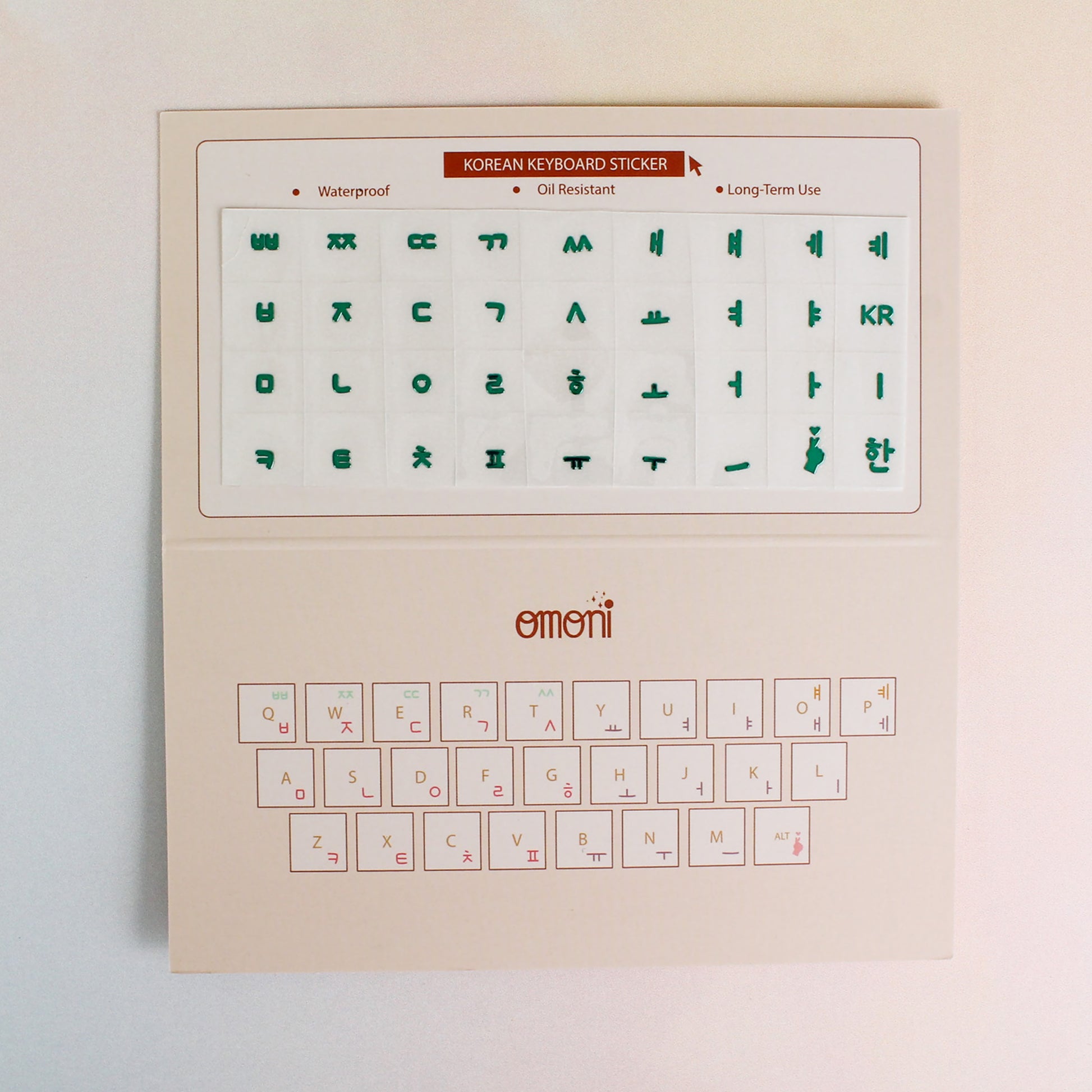With our exclusive typography, OMONI has meticulously crafted a Korean keyboard sticker set that provides partial key button coverage for an enhanced typing experience. Its adaptability ensures compatibility with various keyboards, whether circular or square-shaped. This keyboard sticker set adds a touch of sophistication to your device while retaining the original design of your keyboard. Please take advantage of the opportunity to immerse yourself in the beauty of the Korean language with our unique and practical keyboard stickers.